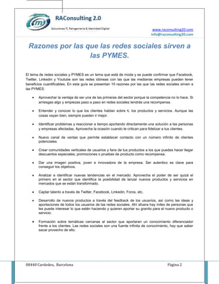 El marketing en redes sociales es esencial para mejorar la imagen de una empresa y facilitar la comunicación con clientes actuales y potenciales. Las estrategias de social media son flexibles, permiten resultados rápidos y son más seguras que comprar enlaces. Además, ayudan a las PYMES a identificar tendencias, fidelizar clientes y crear comunidades de usuarios.