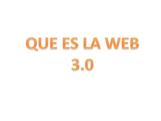 La Web 2.0 se refiere a la transición de aplicaciones de escritorio a aplicaciones basadas en la web enfocadas en los usuarios. El término fue acuñado por Dale Dougherty en 2004 para describir el resurgimiento y evolución de la web, caracterizado por nuevas aplicaciones con funcionalidades sorprendentes. Algunos principios clave de la Web 2.0 incluyen la web como plataforma, la información que impulsa Internet, la innovación descentralizada, y servicios en constante mejora. La Web 3.0 se refiere a las próxim