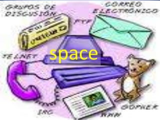Este documento describe las características de los espacios en la web y de MySpace en particular. Los espacios son páginas web que combinan servicios como blogs, correo electrónico, chat y foros, los cuales pueden ser personalizados por el usuario sin conocimientos técnicos. MySpace permite a los usuarios publicar boletines visibles a sus amigos durante 10 días y crear grupos para compartir páginas y mensajes.