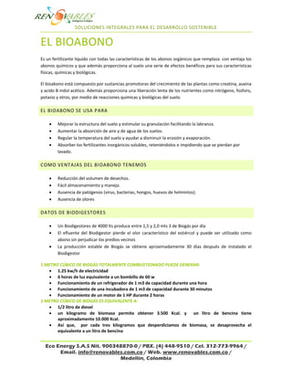 Un biodigestor es un tanque que fermenta desechos orgánicos como estiércol de ganado para producir biogás y bioabono. El biogás puede usarse como combustible y el bioabono como fertilizante orgánico. Los biodigestores reducen la contaminación y producen energía renovable de manera sostenible. Existen biodigestores horizontales y verticales de diferentes capacidades para proyectos a pequeña y gran escala.