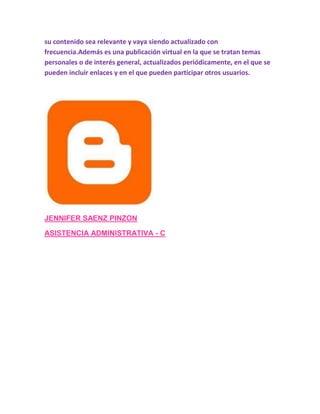 Un blog es un registro en internet o diario donde una persona puede dar información de forma accesible a otros. Cualquier persona puede crear fácilmente un blog en tan solo 5 minutos para compartir sus intereses, estudiar, encontrar trabajo u otras actividades. Un blog es una web actualizada periódicamente con contenido relevante sobre temas personales o de interés general donde los usuarios pueden participar e intercambiar información.