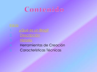 Un blog es un sitio web que recopila cronológicamente artículos de uno o más autores, apareciendo primero el más reciente. Los blogs permiten a los lectores comentar y establecer un diálogo con el autor. Su uso puede ser periodístico, empresarial o personal. Los blogs se hicieron populares después de las comunidades digitales de los años 90 como foros de internet que permitían conversaciones con hilos de mensajes relacionados. Algunas herramientas comunes para crear blogs son Freewebs, Blogger y LiveJournal.