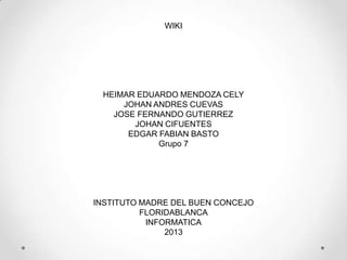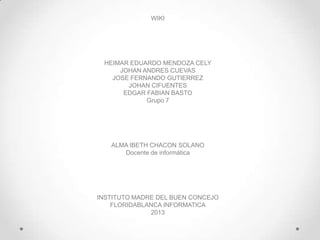 El documento describe el origen y características de los wikis. Ward Cunningham creó el primer wiki, WikiWikiWeb, en 1995 para permitir la colaboración y edición compartida de documentos en línea de forma sencilla. Los wikis permiten que cualquier usuario cree y edite páginas de forma fácil y rápida, y son útiles para el trabajo colaborativo y la gestión del conocimiento.