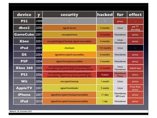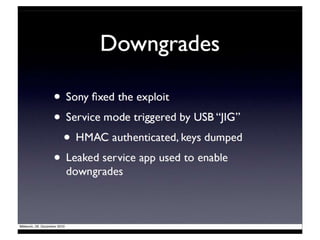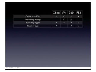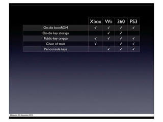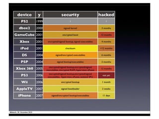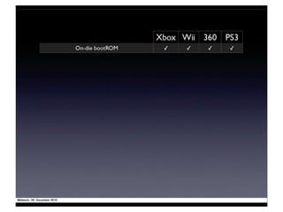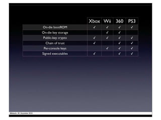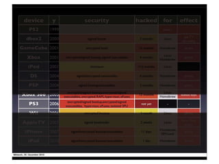 El documento detalla las fallas de seguridad y piratería en PlayStation 3 que resultaron en la caída del servicio de PlayStation Network en 2011, afectando a más de 77 millones de usuarios y causando pérdidas significativas a empresas. Se analizan los exploits de Geohot y el impacto de la piratería en la plataforma, destacando las brechas en la seguridad del sistema. También se observan las implicaciones de estas vulnerabilidades en el mercado de las videoconsolas y la respuesta de Sony.