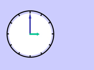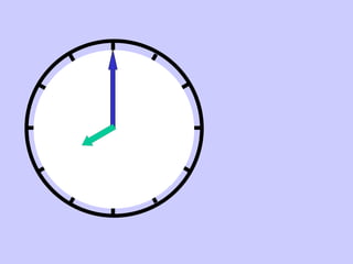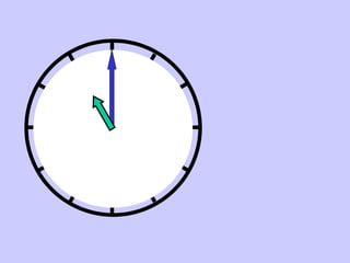 El documento presenta las horas del día de forma incremental, desde la 1 hasta la 12, incluyendo mediodía y medianoche. Luego muestra expresiones para indicar cuartos de hora, medias horas y cuartos de hora restados de la hora actual. Finalmente, da ejemplos de cómo expresar horas y minutos.