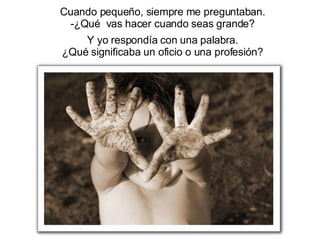 El documento reflexiona sobre cómo cuando era niño siempre le preguntaban qué quería ser de grande, pero ahora de adulto se da cuenta de que lo importante es qué puede ser para los demás. Propone que podemos ser una voz serena, una luz para quienes están en las sombras, y una sonrisa para quienes están tristes. También podemos ser palabras de aliento para quienes quieren rendirse y ser más humanos y agradecidos.