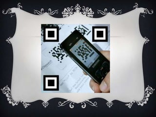 Los códigos QR son una evolución del código de barras que permite representar más de 4000 caracteres alfanuméricos en un gráfico bidimensional. Inicialmente se usaban en la industria automotriz para el control de inventarios, pero ahora se usan en muchos sectores para compartir información visualmente. Para leer un código QR se necesita una cámara y un lector compatible, aunque ahora la mayoría de teléfonos los pueden leer. La creación de códigos QR es sencilla a través de generadores en línea o aplicaciones, e introduci