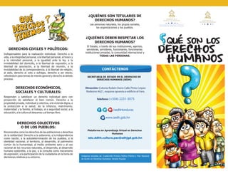 Este documento describe los titulares y responsables de los derechos humanos. Todos los seres humanos son titulares de derechos humanos independientemente de su nacionalidad, raza, sexo u otra característica. Los estados, instituciones privadas y todas las personas deben respetar los derechos humanos. Los derechos humanos incluyen derechos civiles y políticos, derechos económicos, sociales y culturales, y derechos colectivos de los pueblos.