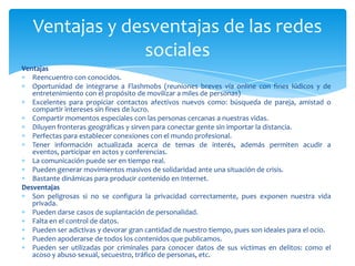 1) Define qué son las redes sociales y menciona algunas ventajas y desventajas de usarlas.