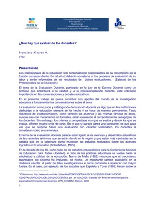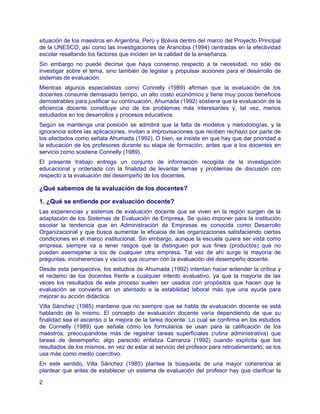 2) Señala que no existe consenso sobre cómo evaluar a los docentes y que los criterios y métodos de evaluación varían ampliamente.