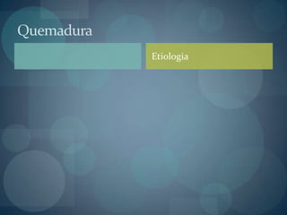 Este documento clasifica las quemaduras según su profundidad y superficie. Las clasifica en primer, segundo y tercer grado según su profundidad, y leve o grave según su superficie. Explica cómo medir la superficie quemada usando la regla de los 9 de Wallace. También menciona factores como la localización y patologías asociadas. Finalmente, señala algunas fuentes para obtener más información sobre el tratamiento de quemaduras.