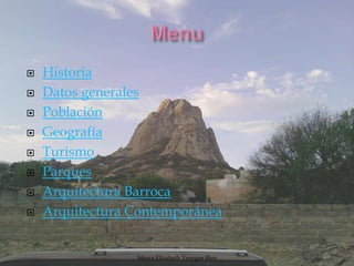 El documento describe la historia y características de la ciudad de Santiago de Querétaro en México. Brevemente describe la fundación de la ciudad en 1531 y su papel en la independencia de México en 1810. También resume que Querétaro tiene una población de 734,139 habitantes y una superficie de 759.9 km2, y destaca su arquitectura barroca y sitios turísticos como el Centro Histórico y el Parque de la República.