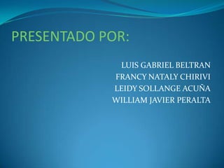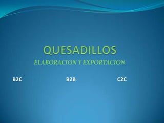 Este documento presenta información sobre los modelos de negocio B2B (business-to-business), B2C (business-to-consumer) y C2C (consumer-to-consumer). Define cada modelo y proporciona ejemplos de empresas colombianas que utilizan estos modelos, como Alpina y Colombina para B2B, y MercadoLibre para C2C.