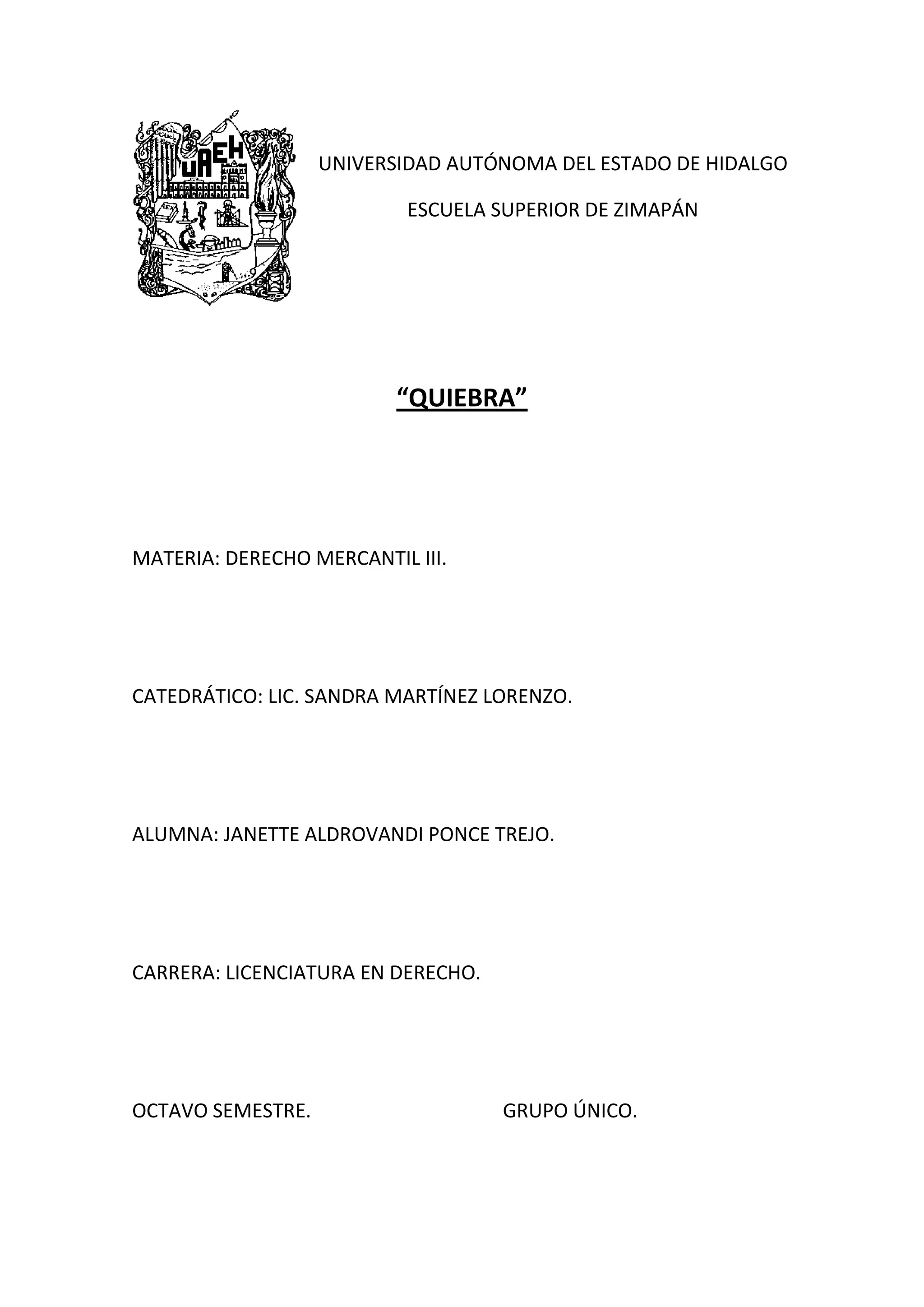Este documento resume los aspectos clave de la quiebra de acuerdo con la Ley de Concursos Mercantiles de México. Explica que un comerciante puede ser declarado en quiebra si lo solicita, si expira el plazo de conciliación, o si el conciliador lo solicita. Detalla los efectos de una sentencia de quiebra sobre el deudor y sus bienes, acreedores, y el proceso de designar a un síndico. También cubre las clases de quiebra, incluyendo quiebras voluntarias, fortuitas,