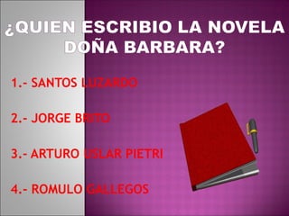 El documento lista los nombres de varios autores y autoras venezolanos e internacionales. Entre los autores venezolanos se encuentran Santos Luzardo, Jorge Brito, Arturo Uslar Pietri y Romulo Gallegos. Entre los autores internacionales están William Shakespeare, Nicolás Maquiavelo, Antoine de Saint-Exupéry y Pedro Piñero. Entre las autoras se encuentran Pablo Neruda, Leonardo Padrón, Alexis Aleguilar y Aquiles Nazoa, así como Carolina Durán, Yolanda Arzola, Gabriela Mistral y