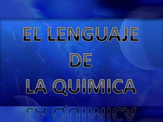 El documento describe el lenguaje utilizado en química, incluyendo símbolos químicos, fórmulas, ecuaciones y signos, los cuales fueron adoptados para describir de forma precisa y sencilla los compuestos químicos y reacciones. También explica que se les dio nombres abreviados a las sustancias para incluir información sobre su composición molecular y naturaleza elemental.