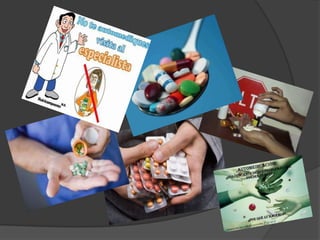 El documento habla sobre el papel fundamental de la química en la elaboración de productos farmacéuticos y medicamentos para combatir enfermedades y mejorar la calidad de vida. Explica que la síntesis de alcaloides y otros compuestos ha permitido crear nuevos antibióticos, analgésicos y otros medicamentos terapéuticos.