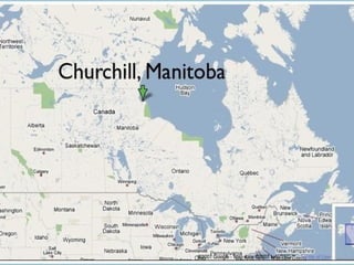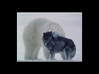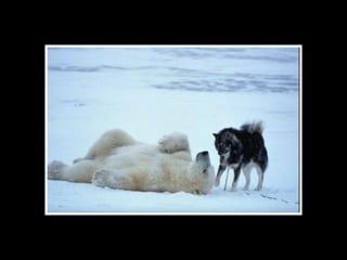 El documento describe una fotografía de un iceberg tomada por un buzo cerca de una plataforma marina en Canadá. Se estima que la parte sumergida del iceberg pesa 300 millones de toneladas. También incluye fotos de un oso polar jugando con unos perros en el polo norte, tomadas por un fotógrafo anónimo.