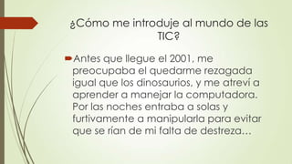 Una profesora peruana con 27 años de experiencia actualmente trabaja en un CEBA nocturno con estudiantes que están aprendiendo sobre las TICs. Ella se introdujo al mundo de las TICs antes de 2001 para evitar quedarse rezagada, aprendiendo a usar la computadora en privado para evitar burlas. Completó un posgrado en administración de TICs que le resultó muy útil. Disfruta asistir a eventos relacionados con las TICs y aprender recursos educativos abiertos en línea.