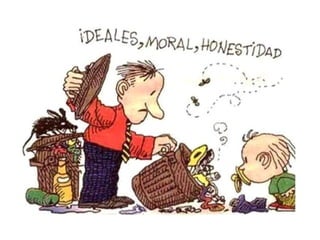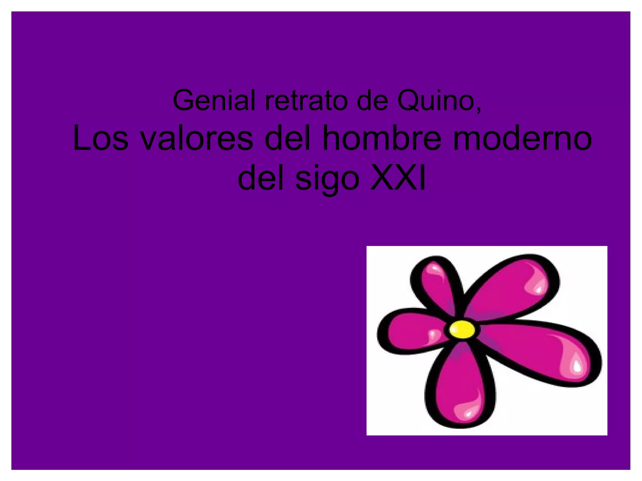 El documento describe los valores del hombre moderno del siglo XXI. Quino explica que el ser humano ha adoptado nuevos valores a lo largo de los siglos para ajustarse a los tiempos modernos. Los valores que dominan al hombre actual incluyen la tecnología, la innovación y el cambio constante.