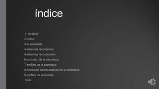 Este documento describe los roles y responsabilidades de una secretaria. Explica que una secretaria es responsable de tareas como escribir correspondencia, tomar actas de reuniones, organizar documentos y eventos de la oficina. También discute los diferentes perfiles requeridos de una secretaria, incluyendo su preparación académica, control emocional, psicología e imagen profesional.