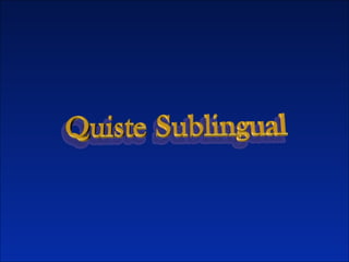 ![quiste [cyst]m. Formación patológica en forma de bolsa o cavidad limitada por una membrana y que contiene algún fluido de diversa naturaleza desde normal hasta neoplásica. κύστις gr. 'bolsa' existir en lat. mediev. porque aparece en castellano de la misma época.](https://image.slidesharecdn.com/quistesublingual-110424130516-phpapp01/85/Quiste-sublingual-3-320.jpg)
