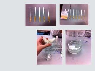 Este documento presenta un procedimiento para determinar experimentalmente la presencia de cationes y aniones en el suelo. Se describe cómo agregar suelo tamizado a agua destilada y ácido nítrico para obtener una disolución que luego se usa para identificar cloruros, sulfatos e iones de hierro mediante reacciones con nitrato de plata, cloruro de bario y sulfocianuro de potasio respectivamente.