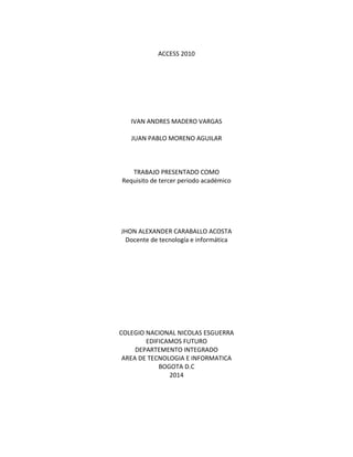Este documento presenta una introducción a las bases de datos relacionales en Access 2010. Explica que una base de datos bien diseñada permite acceder a información exacta y actualizada. Describe las principales características de Access como la creación de tablas, consultas, formularios e informes para almacenar y analizar datos sobre pedidos, clientes y productos. El objetivo es capacitarse en el diseño de bases de datos que permitan un control y seguimiento efectivo de la información.