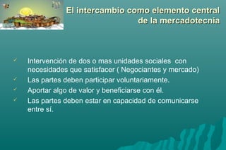 Este documento presenta los conceptos fundamentales de la mercadotecnia moderna. En 3 oraciones o menos: Introduce los elementos centrales de la mercadotecnia como la satisfacción de necesidades mediante el intercambio voluntario entre compradores y vendedores. Explica que la mercadotecnia busca satisfacer las necesidades de clientes, proveedores y la sociedad de manera beneficiosa para todos. Finalmente, destaca la importancia de la mercadotecnia para las organizaciones, la economía, el sistema económico y las personas.