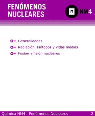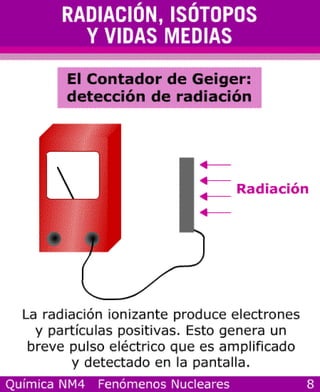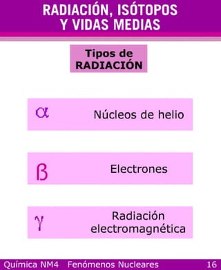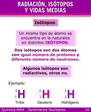 La radiación, los isótopos y las vidas medias son conceptos fundamentales de la física nuclear. La fusión y la fisión son procesos nucleares importantes donde los núcleos atómicos se combinan o dividen, respectivamente.