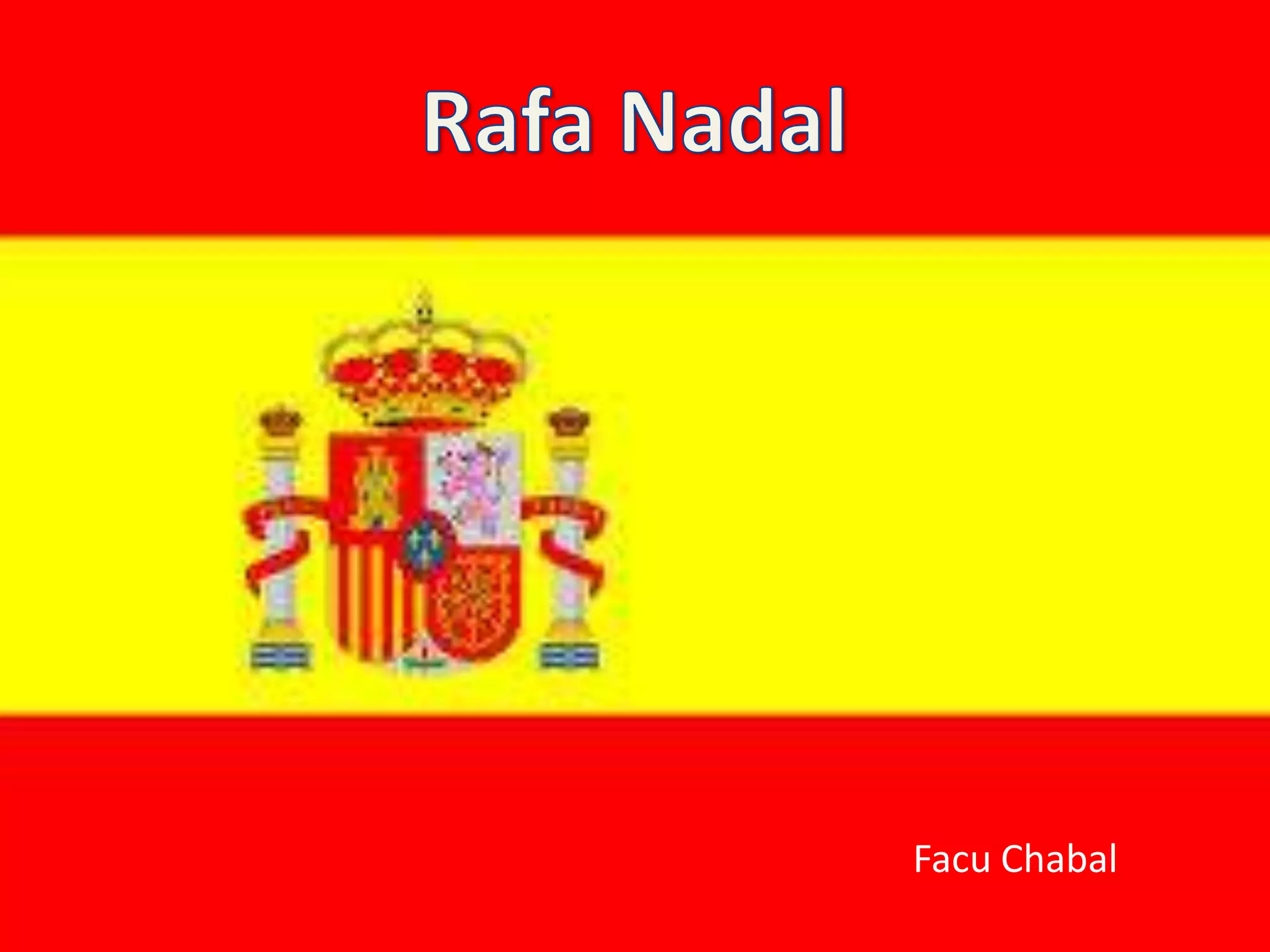 Rafael Nadal es un tenista español considerado uno de los mejores de todos los tiempos, especialmente en canchas de arcilla. Ha ganado 8 títulos del Abierto de Francia, 2 de Wimbledon, 1 del US Open y 1 del Abierto de Australia, y 2 Copas Davis con España. Actualmente ocupa el segundo puesto en el ranking mundial de la ATP, muy cerca del número 1 Novak Djokovic, a quien continúa desafiando en su búsqueda por recuperar la posición de líder.