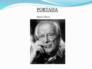 El documento resume la vida y obra del poeta español Rafael Alberti. Cubre su biografía, incluyendo su nacimiento en 1902 en Cádiz y su exilio después de la guerra civil española. Describe sus principales obras poéticas y de teatro, y clasifica sus géneros. Incluye un análisis de uno de sus poemas, donde expresa su nostalgia por el mar de su infancia.