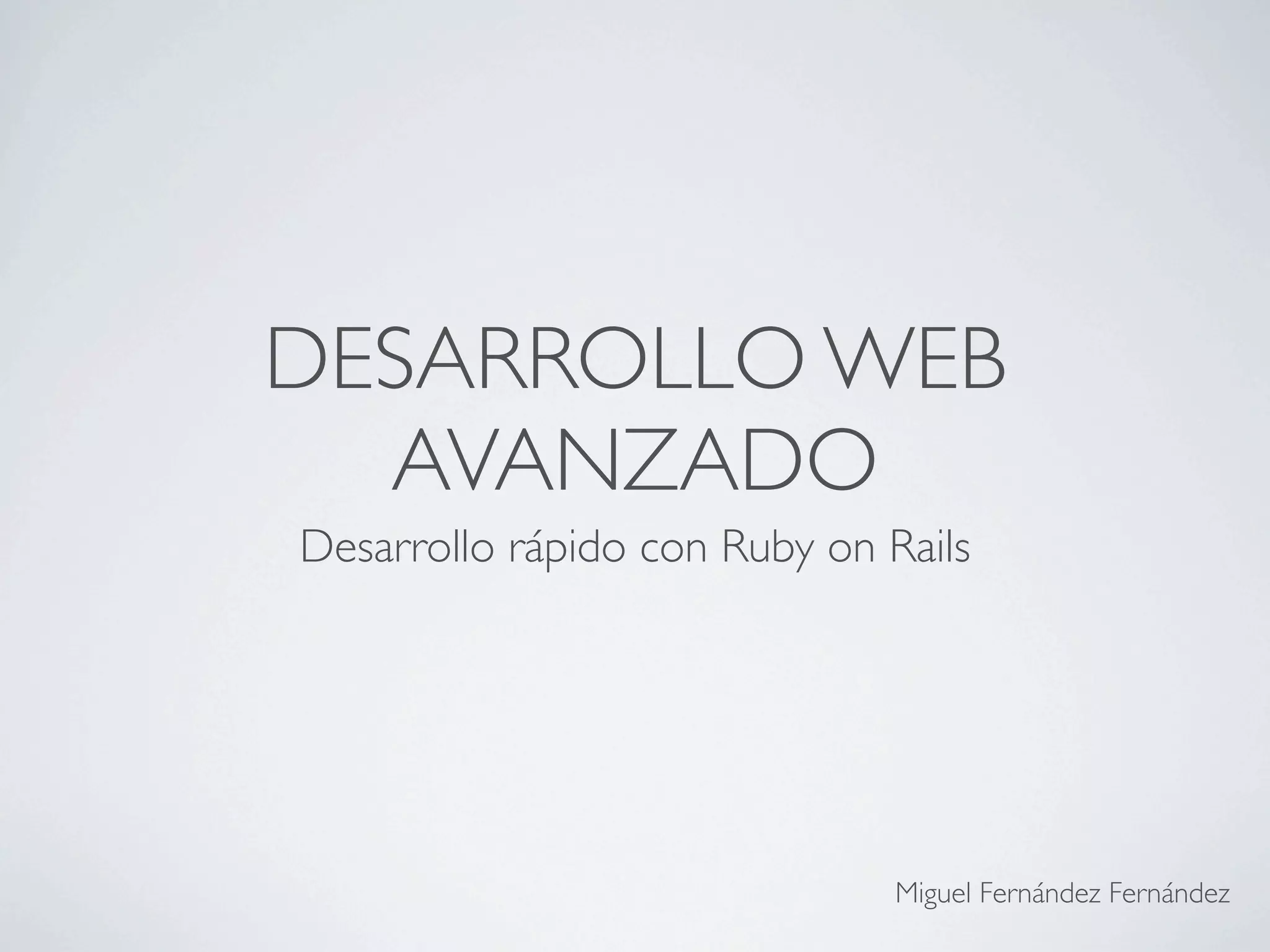 El documento presenta un tutorial sobre desarrollo web avanzado utilizando Ruby on Rails, cubriendo desde la instalación y configuración inicial hasta la creación de una aplicación completa. Se explica el patrón arquitectónico MVC y detalla cómo implementar funcionalidades como la gestión de productos y un carrito de compras. Además, se incluyen técnicas para mejorar la experiencia del desarrollador y la estructura del proyecto.