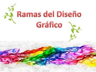 El documento describe las diferentes ramas del diseño gráfico, incluyendo el diseño publicitario, editorial, de identidad corporativa, web, de envases, tipográfico y multimedia. Los estudiantes formarán equipos para investigar una rama en particular, encontrar un producto de esa rama y presentarlo al frente.