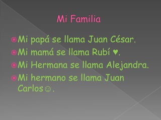 Este documento presenta la información personal de una estudiante, incluyendo los nombres de sus padres y hermanos, así como sus gustos musicales y materias favoritas e impopulares en la escuela.