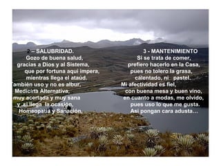 El documento presenta una breve autobiografía de 14 puntos sobre la vida y perspectivas de la persona. Resalta su nacimiento en una familia grande y amorosa en Bogotá, su buena salud gracias a la medicina alternativa, su lealtad hacia los amigos, su trabajo como maestra de música, su crianza en un hogar cristiano liberal y su enfoque en servir humildemente sin celebrar fechas de prestancia.