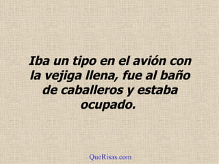 El documento narra la historia de un hombre que necesitaba usar el baño en un avión. Se le permitió usar el baño de mujeres, el cual contenía cuatro botones misteriosos. Al presionar cada botón, experimentaba placeres cada vez mayores. Sin embargo, cuando presionó el botón "RAT", despertó en el hospital sin recordar qué había pasado. La enfermera le explicó que había presionado el botón de "Retirada Automática del Tampax" y como resultado su pene había sido removido.