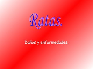 Este documento proporciona información sobre el control de ratas, los daños y enfermedades que pueden causar, así como sus características. Describe varias opciones para controlar ratas dentro y fuera de edificios como estaciones raticidas y trampas. Explica que las ratas pueden transmitir enfermedades como la leptospirosis y describe los síntomas de esta enfermedad. Además, detalla algunas características físicas y de comportamiento de las ratas, como su tamaño, peso, longevidad y hábitat