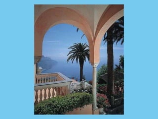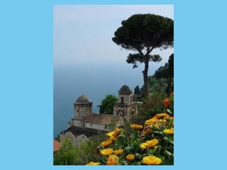 Ravello es una ciudad costera en Italia conocida por su Festival Wagneriano anual que se celebra en el jardín de Villa Rufolo. La ciudad se encuentra a 20 km de Positano en la región de Campania, conocida por su queso mozzarella, olivos y limones.