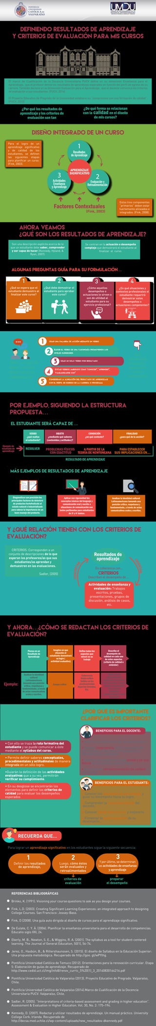Este documento presenta una guía para definir resultados de aprendizaje y criterios de evaluación para cursos. Explica que los resultados de aprendizaje describen lo que los estudiantes deben saber y hacer, y deben estar alineados con las actividades de enseñanza y evaluación. También describe cómo redactar resultados de aprendizaje usando verbos de acción y especificando el contexto, y cómo definir criterios de evaluación para cada resultado de aprendizaje. El propósito es lograr un aprendizaje significativo en los estudiantes y mejorar la calidad
