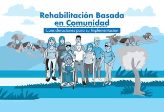 El documento describe la estrategia de Rehabilitación Basada en la Comunidad (RBC), incluyendo sus orígenes, enfoque actual y objetivos. La RBC busca promover la rehabilitación, igualdad de oportunidades, reducción de la pobreza e inclusión social de las personas con discapacidad a través de un esfuerzo conjunto entre la comunidad, familias y servicios gubernamentales. El documento también explica las consideraciones clave para implementar la RBC, como trabajar en los componentes de salud, educación, sustento y empoderamiento de ac