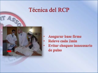 Este documento resume los principales cambios en las guías de reanimación cardiopulmonar (RCP) de 2010 con respecto a las de 2005. Algunos de los cambios clave son dar instrucciones de RCP con compresiones torácicas solamente por teléfono, enfatizar las compresiones sobre la ventilación, y cambiar la secuencia a compresión-ventilación-compresión en lugar de ventilación-compresión-ventilación. También se eliminó la indicación de observar, escuchar y sentir la respiración, y se profund