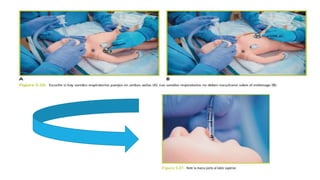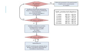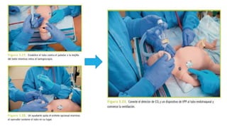 Este documento describe los principios fundamentales de la reanimación neonatal. Explica que los recién nacidos requieren un enfoque de reanimación distinto al de los adultos debido a los cambios fisiológicos que ocurren durante y después del parto. Detalla los pasos iniciales de la atención del recién nacido, incluyendo proporcionar calor, colocar la cabeza y el cuello, eliminar secreciones, secar y estimular. Indica que si el recién nacido no respira o tiene una frecuencia cardíaca baja, se