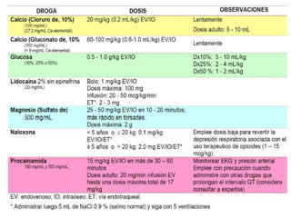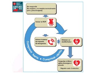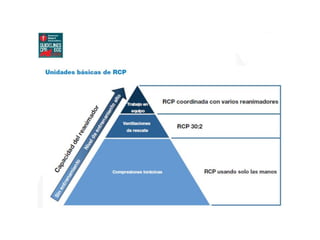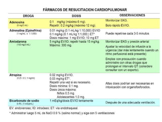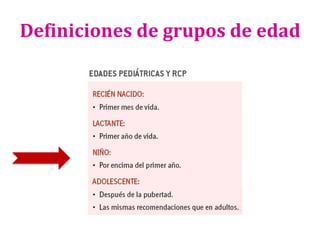 1) El documento presenta las definiciones básicas de parada cardiorespiratoria y reanimación cardiopulmonar en pediatría, así como las causas más comunes de PCR en niños.