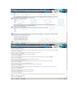 El documento trata sobre reactivo límite, rendimiento y pureza en reacciones químicas. Explica que el reactivo límite es el que se consume por completo y limita la cantidad de productos. También define rendimiento como la relación entre la cantidad de producto obtenida y la teórica, y pureza como la cantidad de sustancia pura en la muestra. Por último, presenta ejercicios resueltos sobre cómo calcular el reactivo límite, rendimiento y cantidad de productos teniendo en cuenta la pureza.