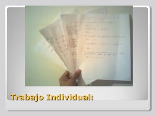 El documento presenta los nombres de cinco estudiantes que trabajaron individualmente en un proyecto final. José Guillermo Bocanegra Hernández, Águeda Belén Díaz López, Santiago González Morales, Gabriela Alejandra Ruvalcaba Ortega y Luis Antonio Sánchez Ávila completaron el trabajo por su cuenta y se les asignaron números de lista para identificarlos.
