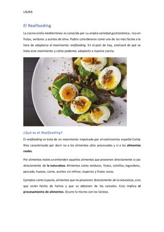 El realfooding es un movimiento que promueve la alimentación basada en alimentos reales y naturales, evitando los ultra procesados. Se conecta con la cocina mediterránea, destacando sus beneficios para la salud y su simplicidad en la preparación. Este estilo de vida busca aumentar la conciencia pública sobre la nutrición y fomentar una dieta saludable tanto en hogares como en restaurantes.