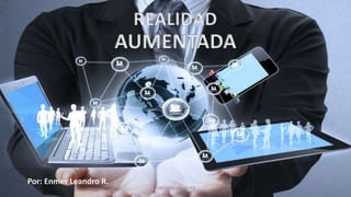 La realidad aumentada (RA) es una tecnología emergente que combina elementos reales y virtuales, enriqueciendo la experiencia del usuario a través de dispositivos como smartphones y gafas especializadas. Esta tecnología tiene múltiples aplicaciones en educación, comercio, entretenimiento y más, potencialmente transformando la forma en que interactuamos con el mundo. Sin embargo, también presenta desafíos, como altos costos y la necesidad de un procesamiento rápido, que deben ser considerados al implementarla.