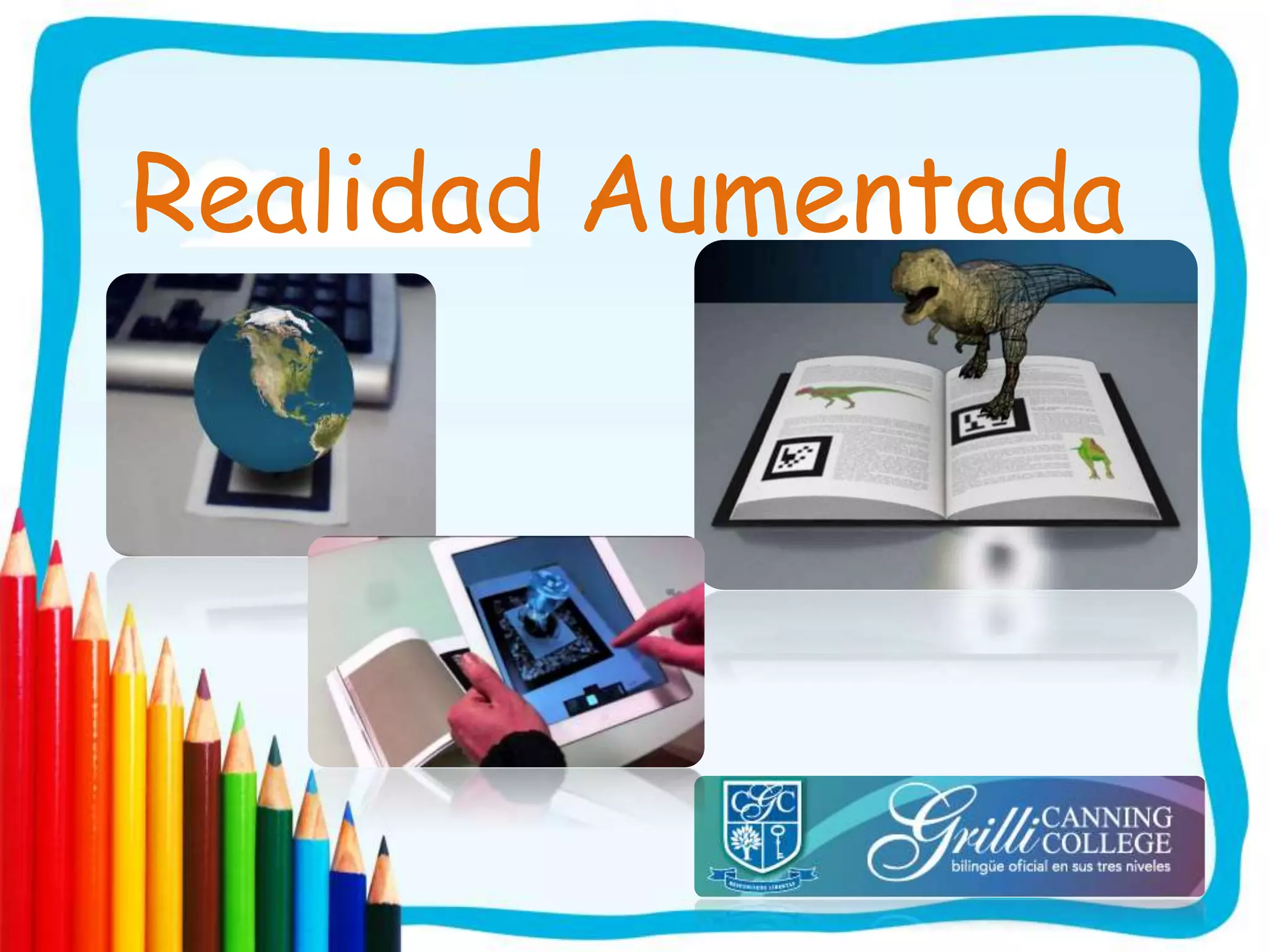 El documento describe una lección sobre realidad aumentada en la que los estudiantes exploraron y aprendieron sobre los cuerpos geométricos utilizando esta tecnología. La realidad aumentada les permitió visualizar y comprender mejor los cuerpos geométricos que habían estudiado anteriormente. Aprendieron que pueden transformar una tarjeta con una marca en una imagen 3D al escanearla con una cámara web y usar un programa informático. La realidad aumentada mejora el aprendizaje al potenciar los procesos cognitivos y facilitar el