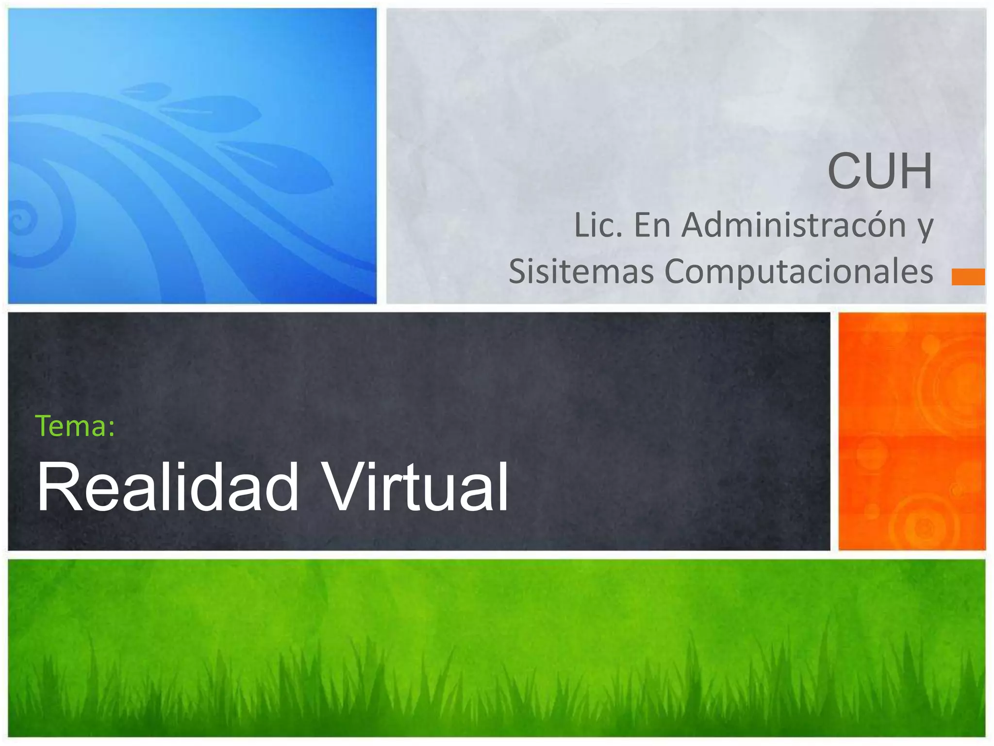 Este documento define la realidad virtual como un ambiente tridimensional generado por computadora en el que las personas pueden interactuar y manipular el contenido utilizando dispositivos especiales. Explica que el software utilizado incluye programas de modelado 3D, visualización de ambientes virtuales y lenguajes de programación. Además, detalla algunos usos de la realidad virtual como entrenamiento militar y de pilotos, medicina, industria automotriz y entretenimiento.